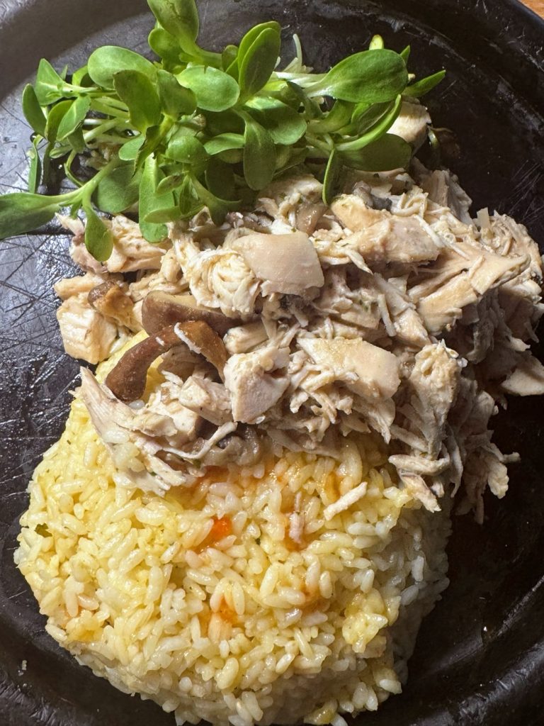 ..but it was awesome. Chicken breast in chicken rice (I used a knorr tasty shit thing) with truffle mushrooms. Really fucking tasty, especially with the fun greens from Jane’s.