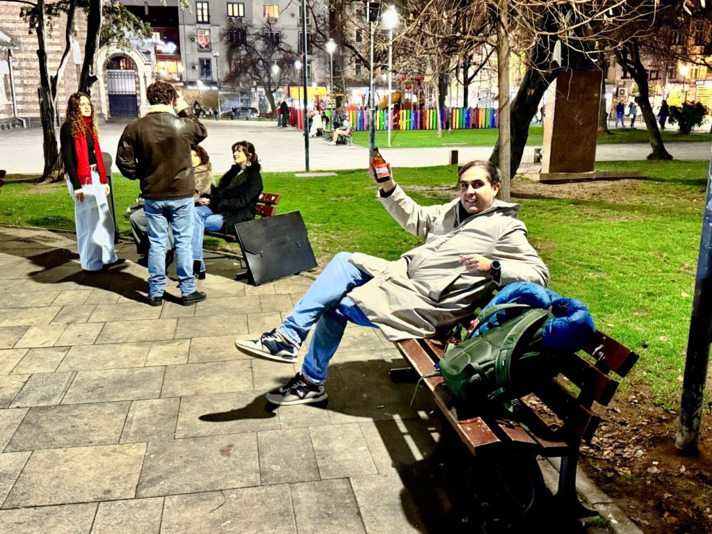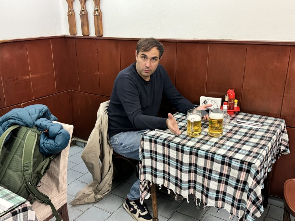 Lager in hand.